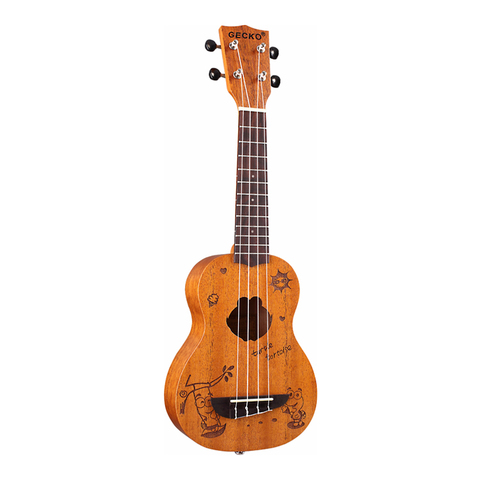 Solid Mahogany String Instrument Gecko Musical with Amplifier Picks Ukulele